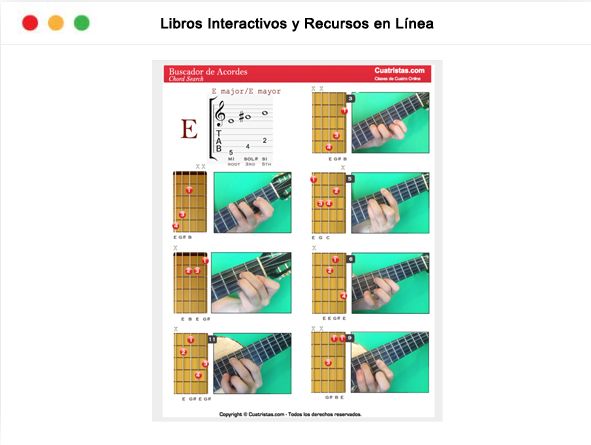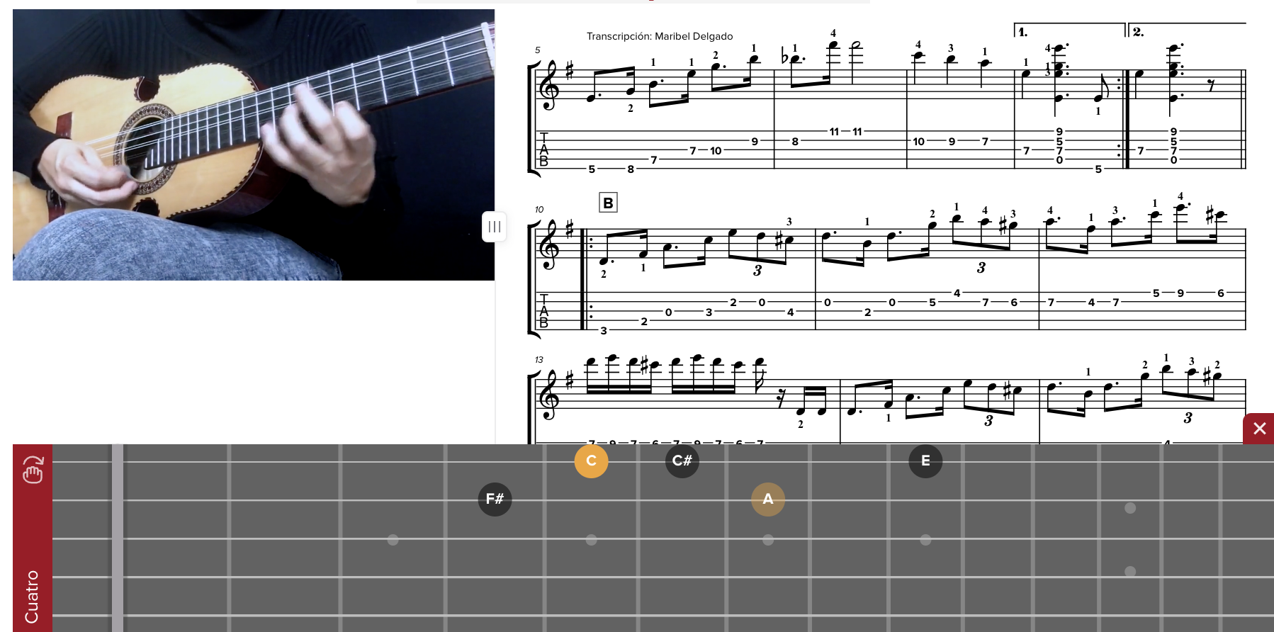Cada lección que ofrecemos se complementa con tablaturas y partituras interactivas y material de aprendizaje para ayudarte a desarrollarte como cuatrista. Imagina, ver un video y a la vez leer a tiempo real la tablatura, la partitura, cambiar la velocidad, hacer loops, repetir frases y más. Puedes descargar todos en formato PDF.
